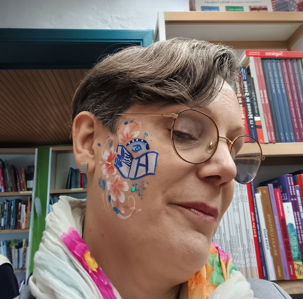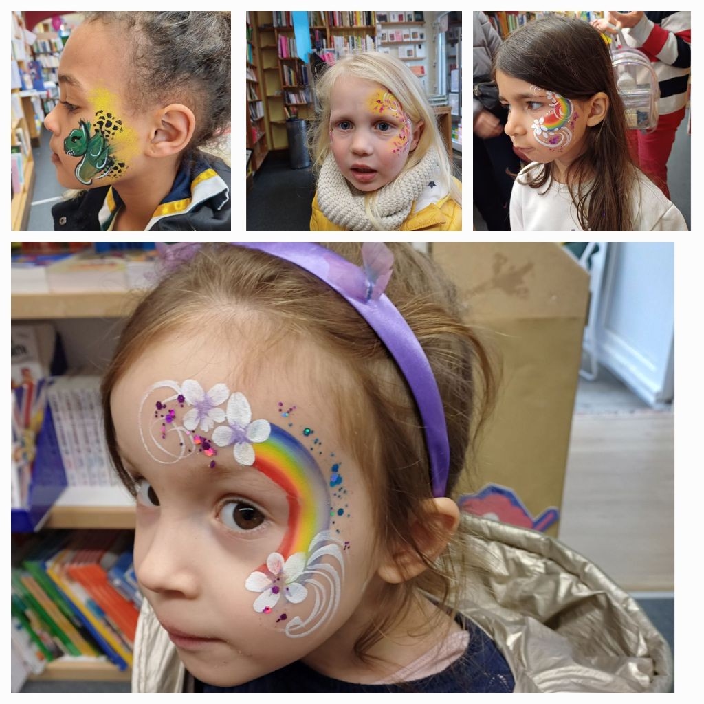 Une grimeuse était également là pour les enfants et j’en ai profité pour me faire dessiner le nouveau logo sur le visage.
